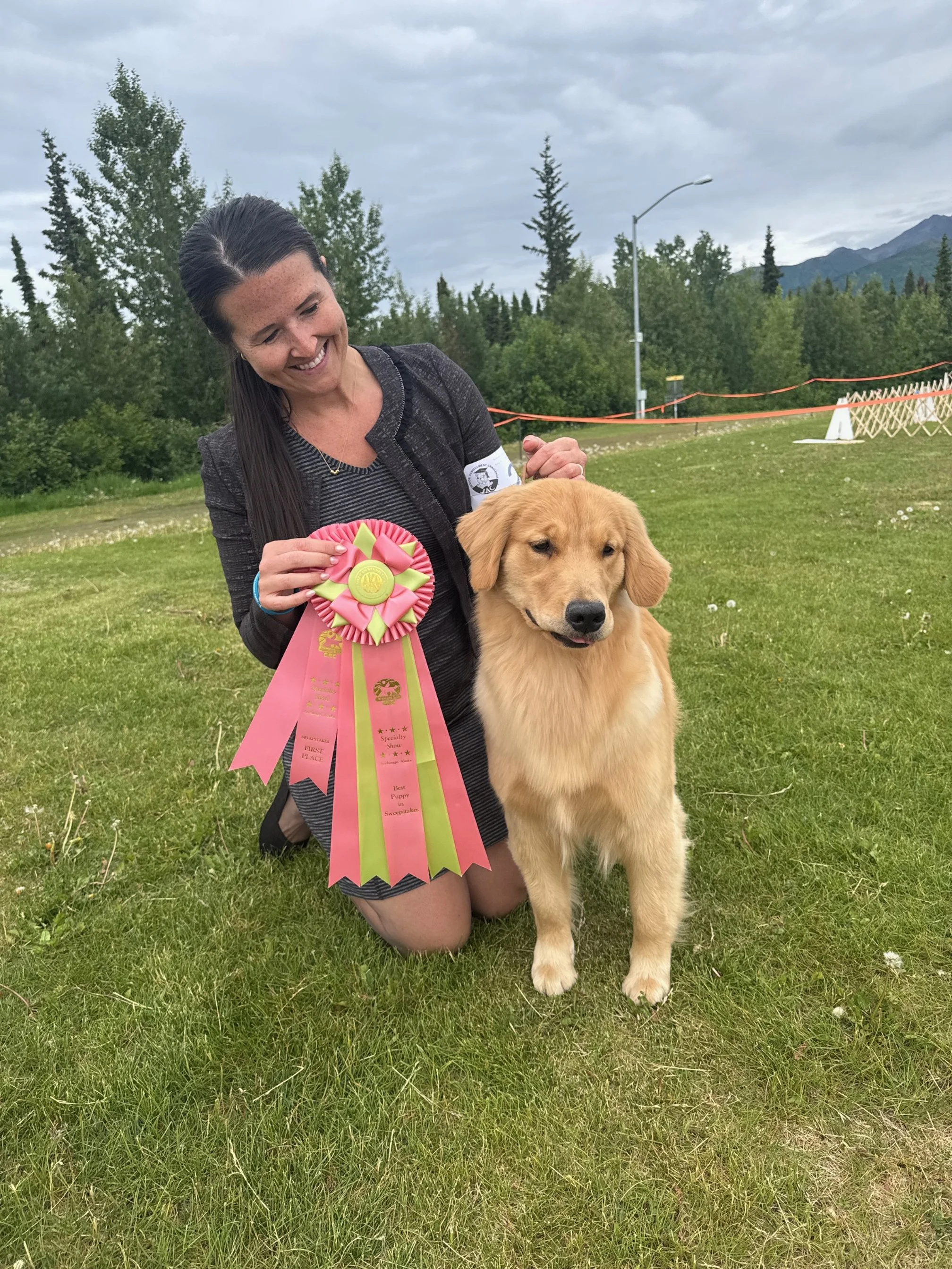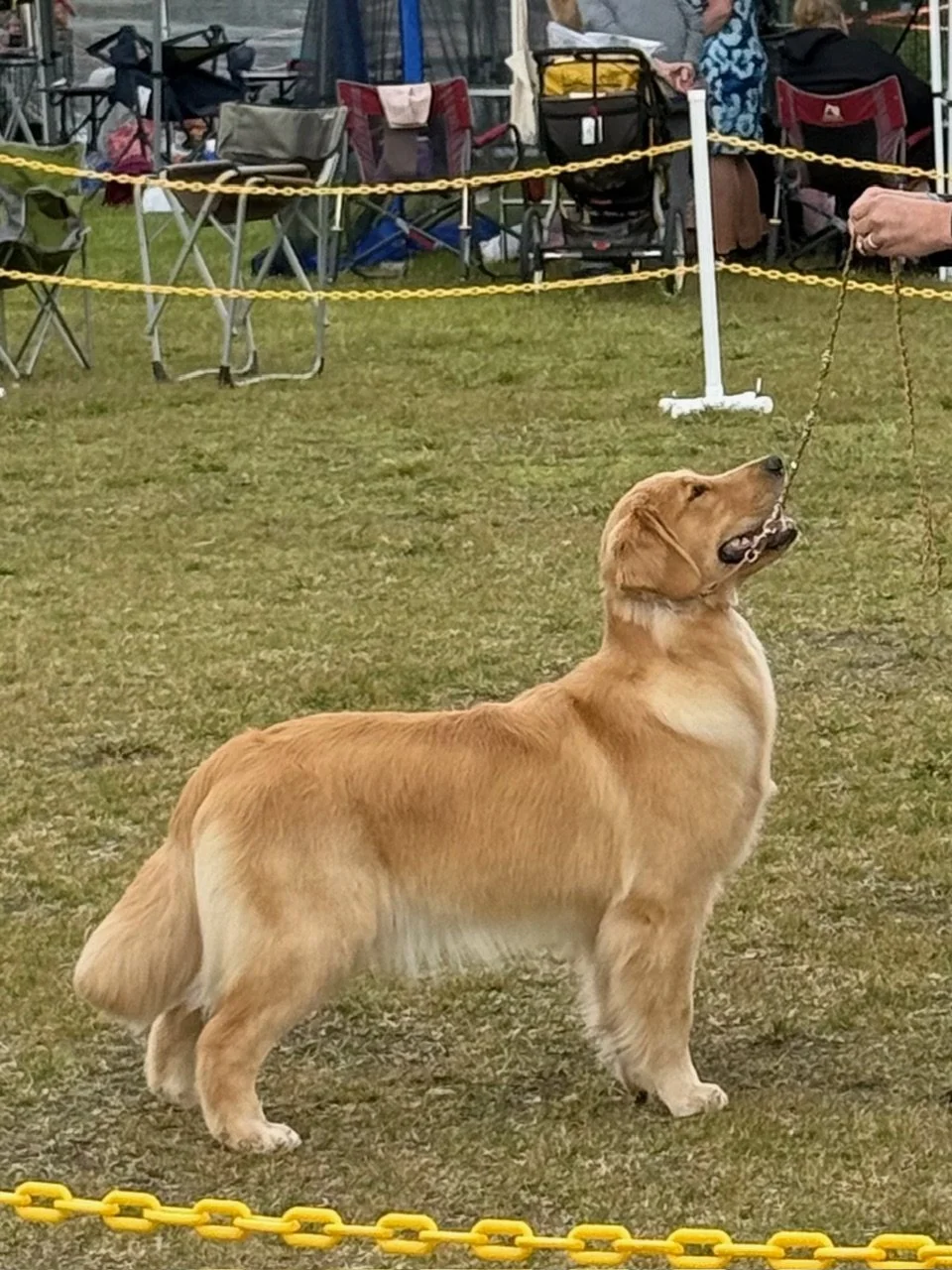 Beans is everything I hoped for and more when we bred Esme to Volos! Born on August 1, 2024, and from the “British Royalty Litter” of Volos X Esme. She is a lovely example of the breed in both structure and demeanor. A snuggle bug and Retriever through and through, and such a happy girl at that! Her name is a conversation starter for sure as we originally named her “Lilibet” That was shortened to “Lilly” which of course morphed into “Lilly Beans.” She now answers more to “Beans” than “Lilly” and so we have just fully embraced her new name that she seems to have chosen for hersled! Beans is pointed from the puppy class and has two Major RWB under her belt already as well. She is such a FUN girl that loves the show ring and we cant wait to watch her shine!